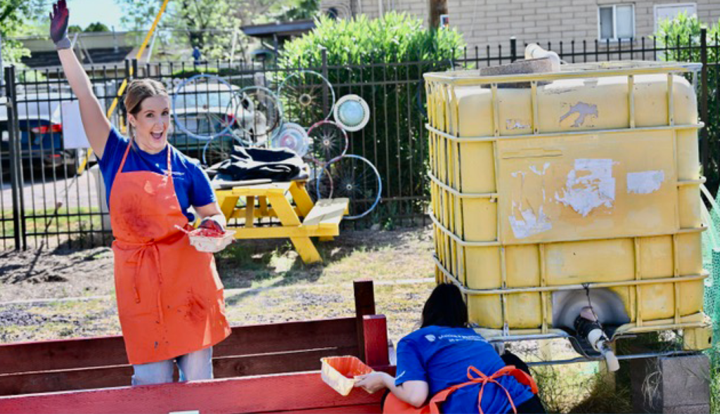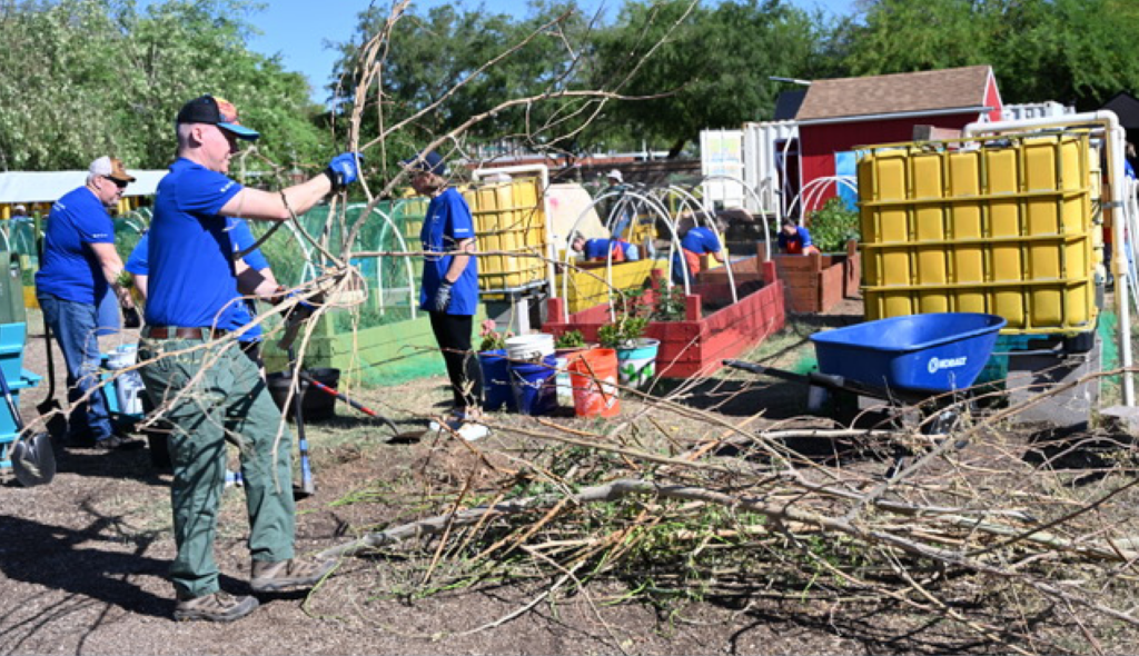 The Corporate and Area Human Resources teams in Phoenix, Arizona came together on April 7, for a morning of volunteer work at Keep Phoenix Beautiful’s Pierson Community Garden to beautify and maintain this important community space. The garden has 52 growing beds that local community members can use to grow their own food and a space where they can gather. More than 40 volunteers tackled a variety of projects, including painting, refreshing soil in the garden beds, planting trees, revitalizing the shade canopy, tree trimming and general area clean up.