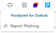 If you receive an e-mail at work that is raising red flags as a potential phishing e-mail, it’s critical that you do not click on anything within the email (for example, links or downloads). Report it immediately by clicking the blue Proofpoint button displaying the letter “P” in white, and then clicking “Report Phishing.”
