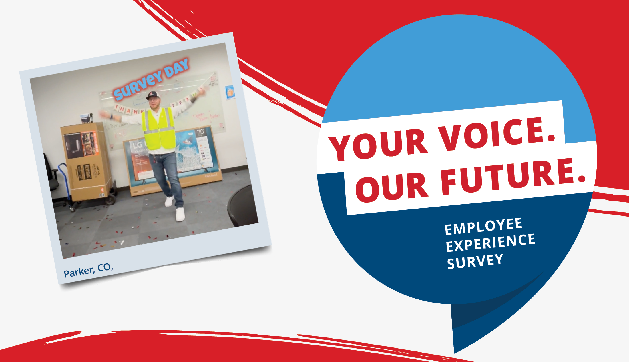 In Parker, CO, General Manager Steven B. led the charge on Day 1 of the Employee Experience Survey with some inspired dance moves while Operations Manager Mitch B. blasted confetti.