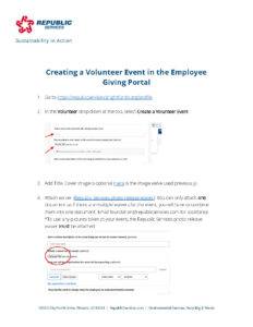 We have a simple job aid that walks you through how to create a volunteer event in our employee giving portal. The job aid shows you how to set up your event, invite others and get started.
